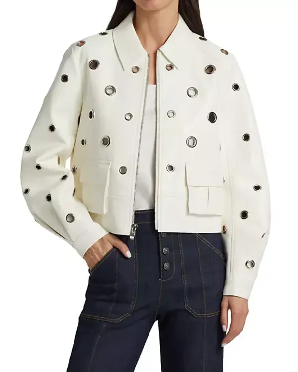 9-1-1 Athena Grant White Grommet Leather Jacket layer takes visual notes from a strong man or woman often visible in high-pressure roles. Its look is shaped through scenes wherein self belief meets calm manipulate, showing a stability among elegance and presence. The piece draws attention no longer through loud functions but via its easy and established layout. Its surface reflects light subtly, giving it a easy and crisp tone that blends with each quiet and energetic settings. Designed with a soft yet formidable technique, it mirrors authority at the same time as staying fashionable, supplying a wearable piece that supports a composed picture.