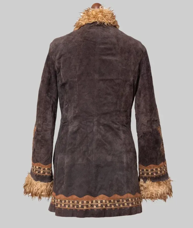 Wearing this jacket instantly elevates my look. The suede is durable, and the fur details are plush. I wish it had a fastening mechanism, but it’s still a versatile piece.