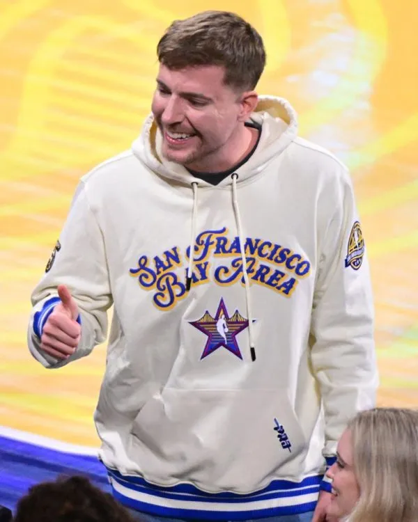 All-Star Game 2025 Mr.Beast Hoodie is Crafted with soft fleece fabric It feels wonderful right from the start. Soft viscose lining keeps the body warm, in addition to the drawstring hooded collar which is simple to adjust. Pullover style is considerably easier and faster to get dressed as there are no buttons or zippers. Long sleeves with ribbed cuffs are a great fit, and the body of the attire stays in shape because of the ribbed hem. It has two waist pockets which are always handy for warming up the hands or keeping small things. White is visually impressive and the piece of art on the chest captures the gaze. Get one and be ready to rock a unique style.