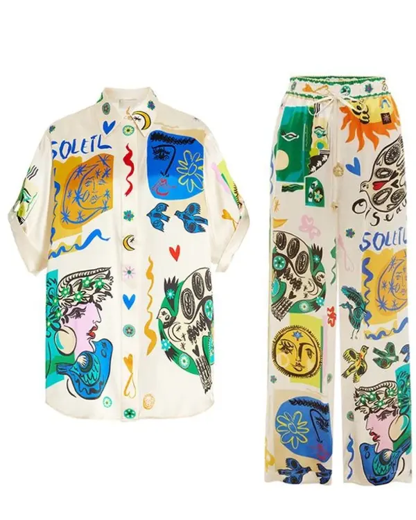 American Idol S23 Penny Samar Printed Pajamas made from soft cotton fabric. The shirt functions a the front button closure, allowing it to be worn open or mounted relying on the instant. A Cuban collar offers it a cozy part at the same time as nonetheless including shape to the neckline. The short sleeves upload consolation and breathability, making it best for warm weather or indoor wear. Matching trousers preserve the casual subject, designed within the identical multicolor print that brings brotherly love and brightness to the entire set. The lightweight cotton permits freedom of motion and maintains matters cool and soft in opposition to the pores and skin. The sample provides a visual spark without being too loud, maintaining the general layout balanced.