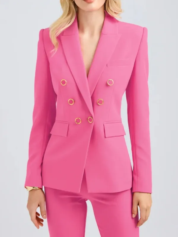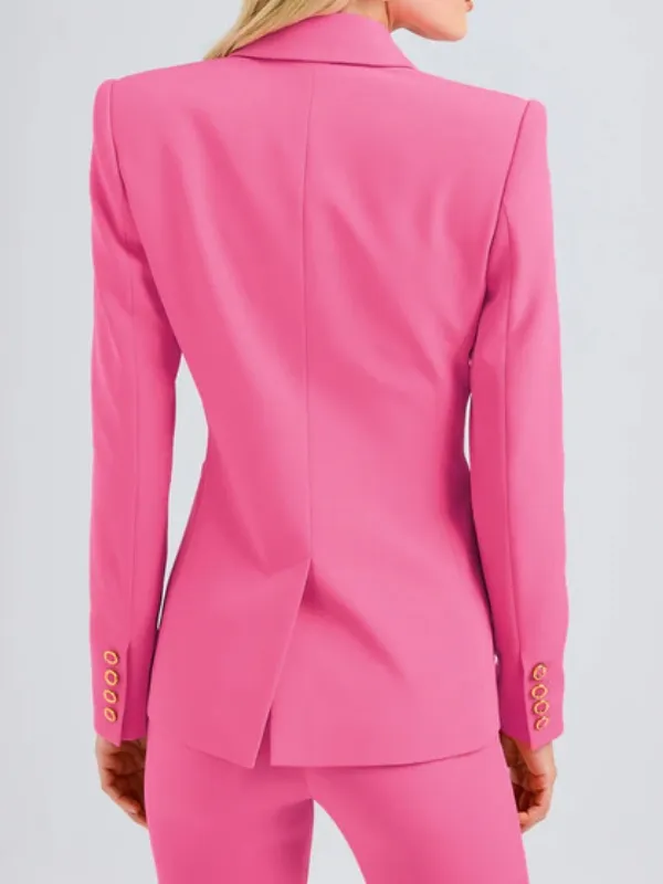 I bought this pink blazer after seeing it online. It came fast and looked just like the photos. It fits true to size and is easy to move in. I like wearing it with dress pants or even jeans. The stitching is clean and the buttons look nice. It feels good and looks sharp.