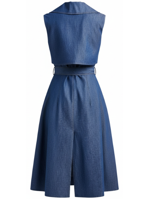 With the And Just Like That Charlotte York Sleeveless Blue Denim Dress, which is made of excellent quality denim, you can embrace the modern style. This makes the product sturdy and long-lasting. It is not finished yet; the front has a much more captivating belted style closure that ensures the ideal fit in keeping with the body theme. Additionally, the lapel collar worked in a furnishing manner. It is without a doubt the best choice for any girl because it can be worn to a formal event, a party, or casually. Purchase this in a vibrant shade of blue.
