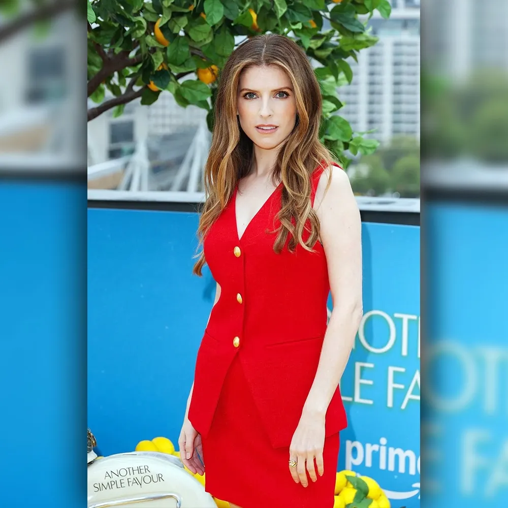 Press Junket Another Simple Favour Anna Kendrick Red Waistcoat