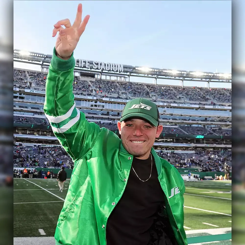 The Anthony Ramos New York Jets Jacket is a should-have for fanatics of both fashion and football. Crafted with a top rate satin exterior, this green bomber outerwear gives a lightweight yet durable layout best for informal outings or sport day celebrations. The easy satin finish adds a hint of class, whilst its iconic green color represents the unmistakable spirit of the New York Jets. For comfort, the NY Jets Green Bomber Jacket features a tender viscose lining that guarantees a cozy wear experience at some point of the day. The front button closure provides a conventional contact, permitting you to wear the clothing open for a relaxed look or buttoned as much as showcase its tailor-made healthy. The rib-knitted collar and cuffs not best enhance its bomber-fashion attraction however also provide a comfortable healthy that maintains the kick back at bay.