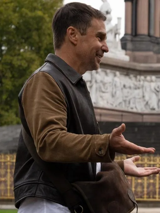 Argylle 2024 Sam Rockwell Brown Leather Jacket