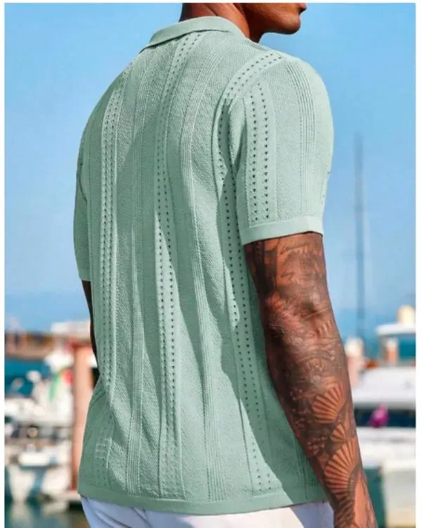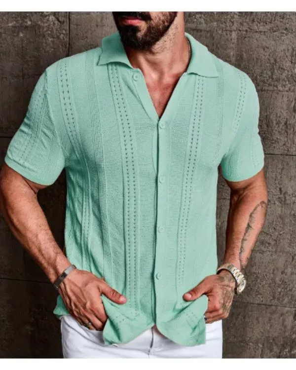 Absolutely love this mint green knit shirt! The color is vibrant and perfect for summer. The fabric feels soft and breathable.