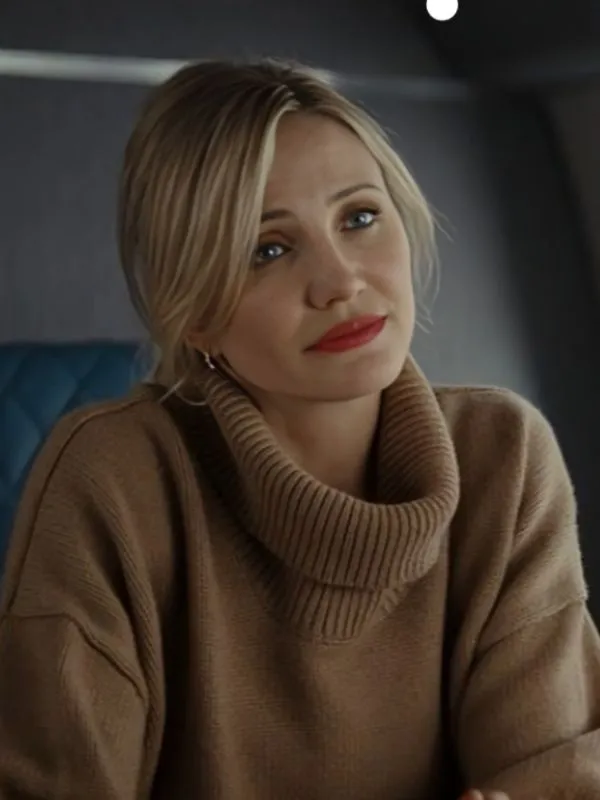 Back in Action Cameron Diaz Turtleneck Sweater is seen in a recent film, worn by a well-known actress during a number of relaxed yet focused scenes. Its deep tone and soft shape help it stand out in a quiet way, fitting well with the setting and mood of the story. The style adds a sense of calm strength, reflecting the character’s grounded nature. The way it fits into the story is smooth, offering a natural look without pulling attention away. It becomes part of the scene through color and design, showing ease while keeping a strong visual balance.