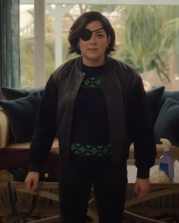 Sarah Greene Bad Sisters Season 2 Bibi Garvey Black Bomber Leather Jacket