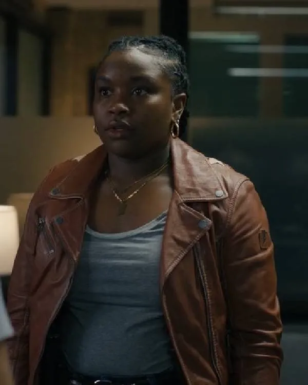 The deep shade of brown gives your outfit a cozy, earthy vibe that goes well with dresses, skirts, and jeans. The jacket combines traditional elements with a contemporary twist, featuring a sleek zipper closure and a classic lapel-style collar. It is a unique piece that adds effortless charm to any ensemble and works well in all seasons. This jacket’s star-studded inspiration from Courtney Taylor in Ballard S01 channeling her self-assured, rebellious energy is what really makes it stand out. This jacket is made to draw attention, regardless of whether you are a fan of the series or just enjoy bold fashion.