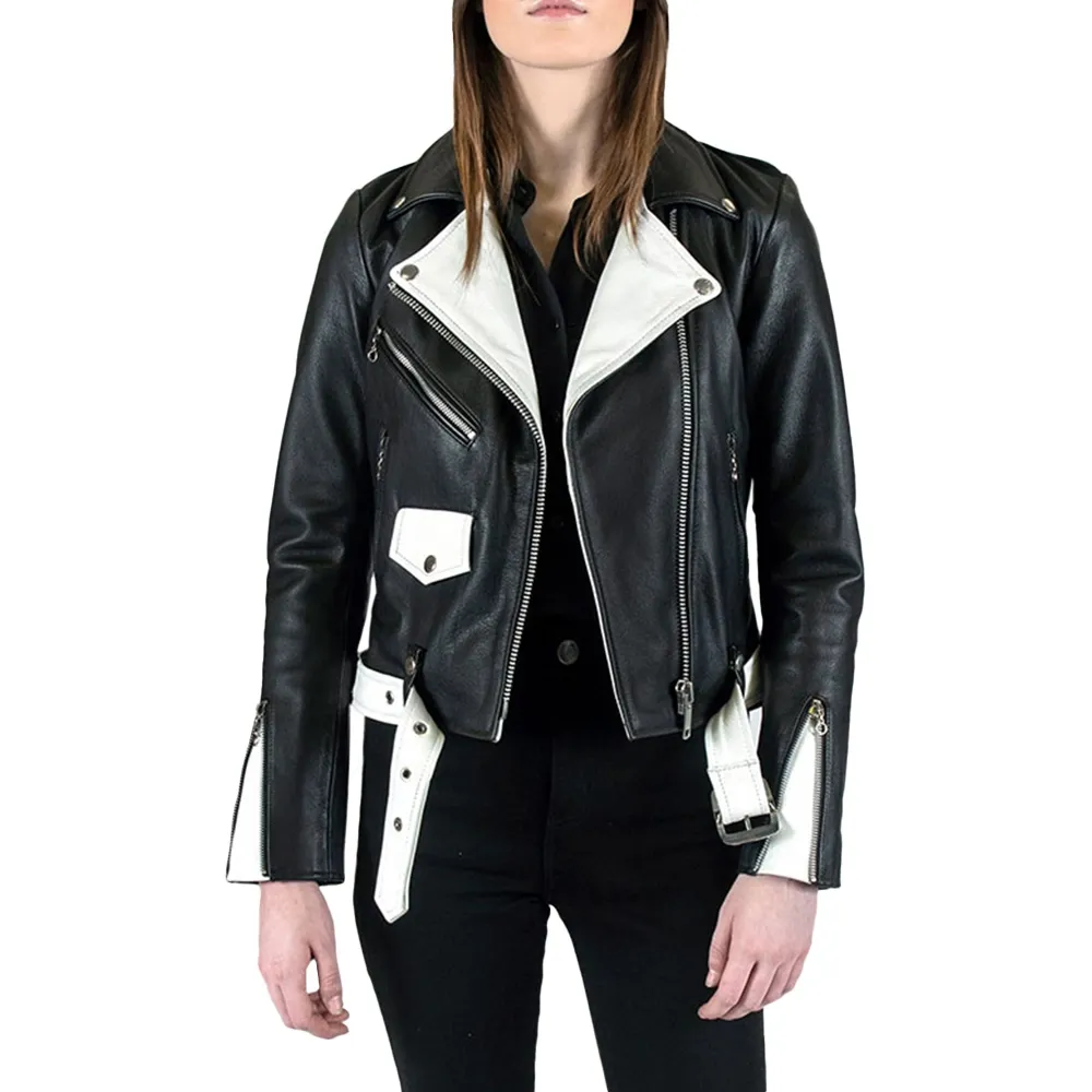 Black and White Biker Leather Jacket Women Black and White Biker Leather Jacket Women