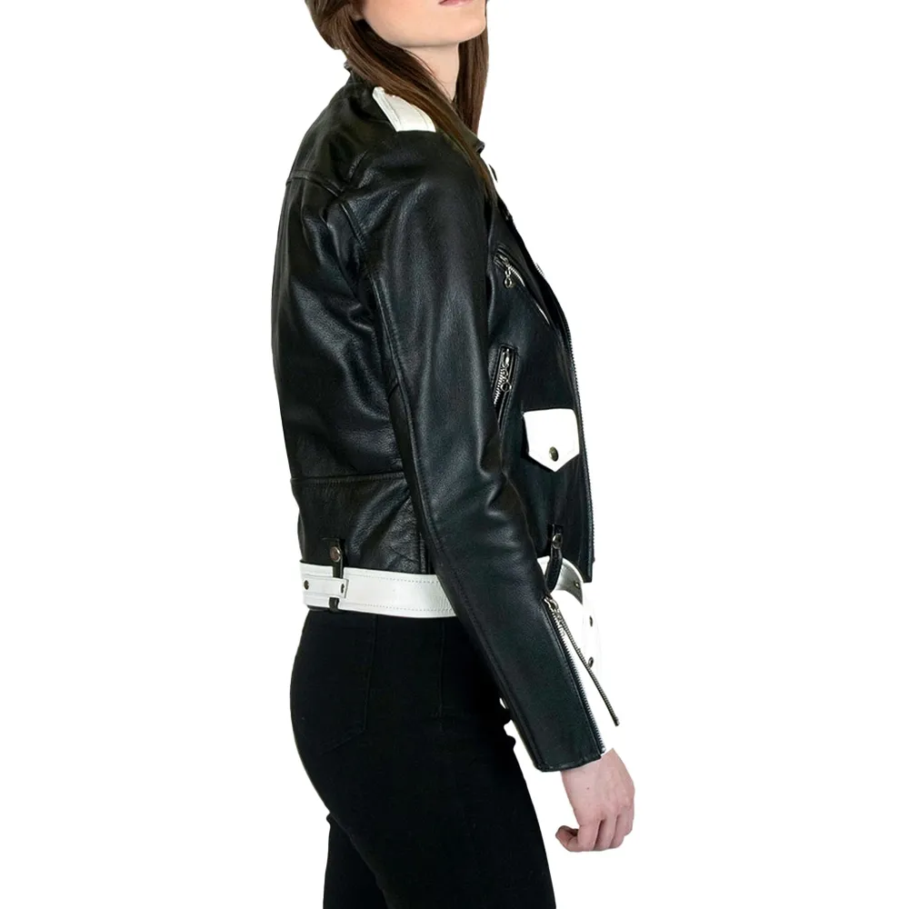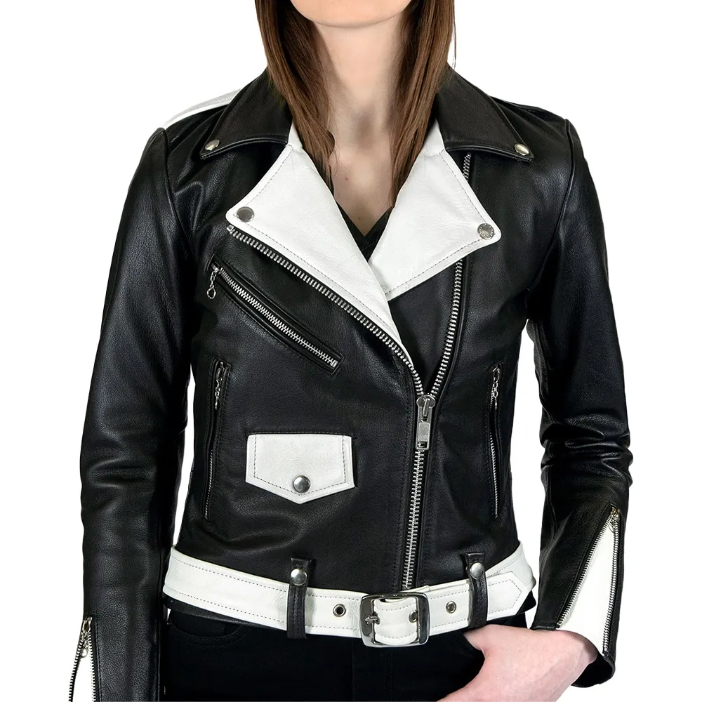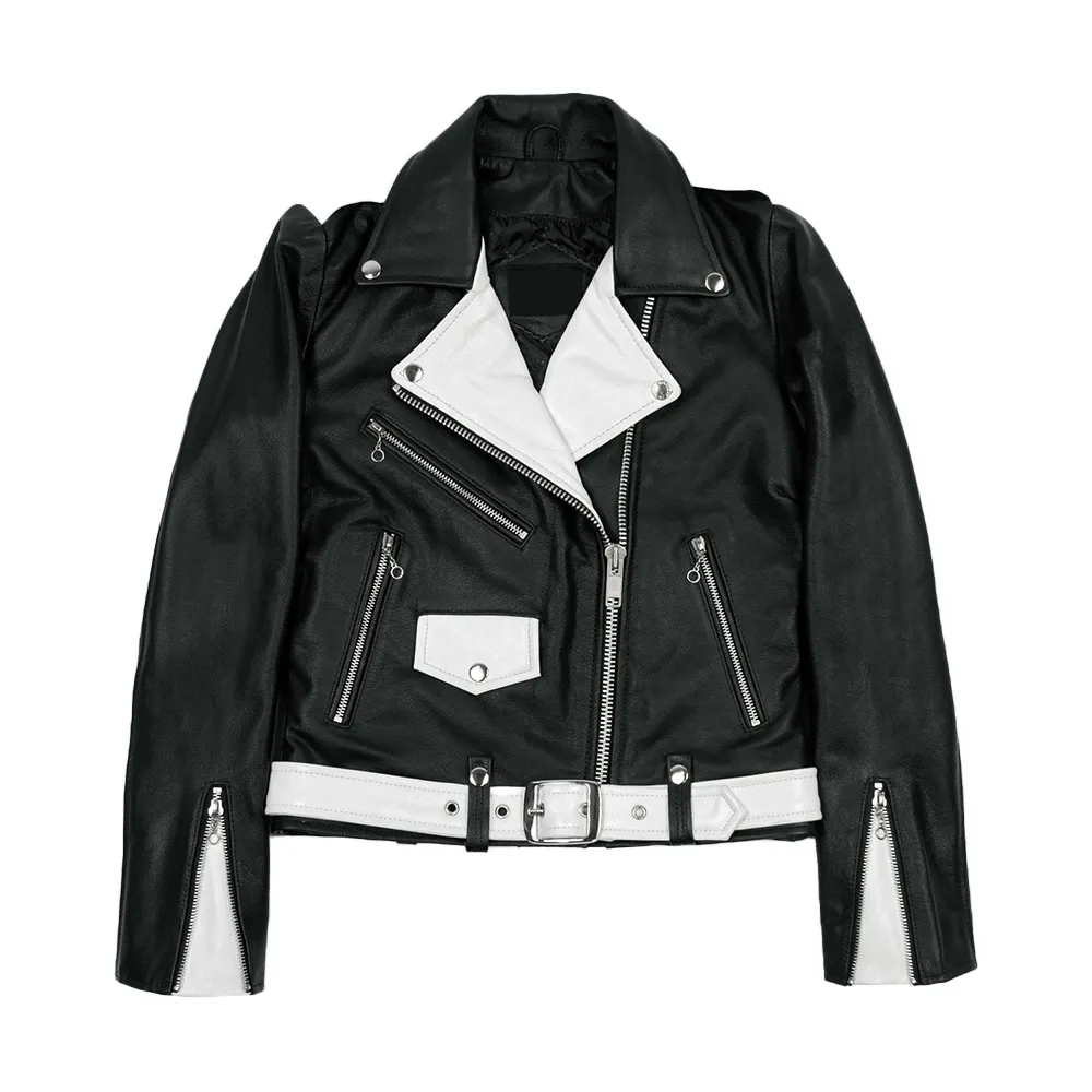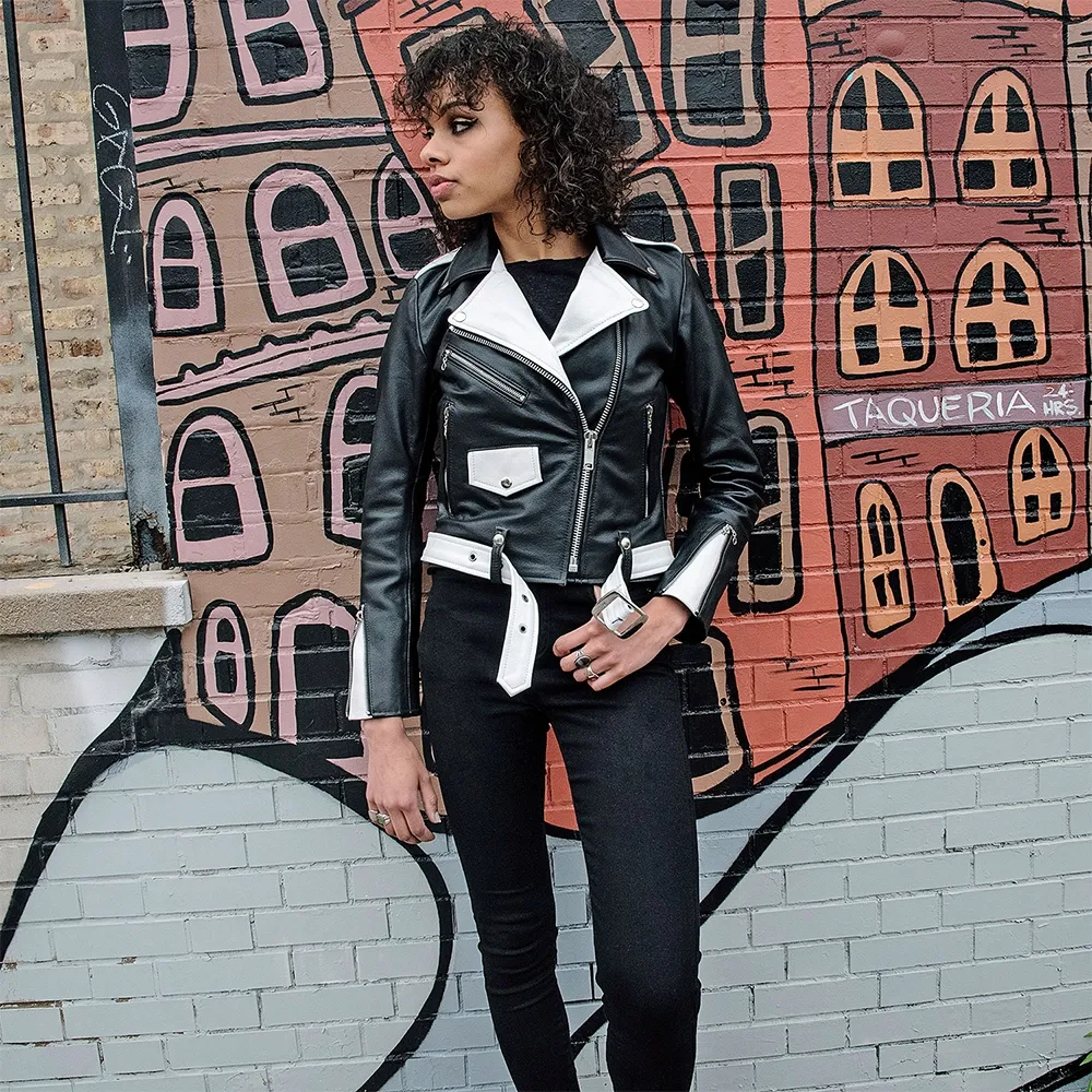 Black and White Biker Leather Jacket Women