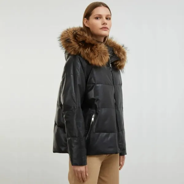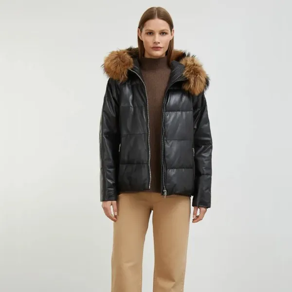 Black Puffer Jacket With Fur Hood Womens
