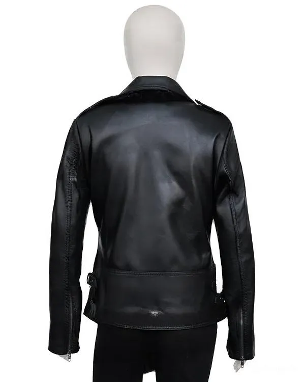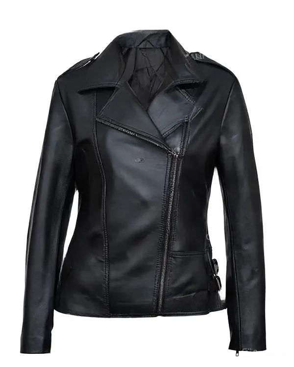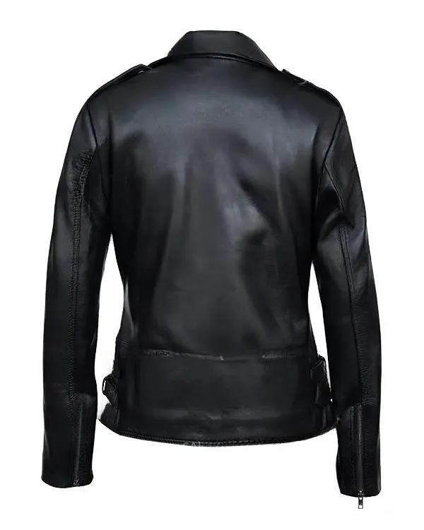 This traditional ladies’ biker jacket is crafted from top notch actual leather-based that gives sturdiness and style. Inside, it functions a tender viscose lining to keep you secure all day. The jacket consists of a notched lapel collar, full-period sleeves with zippered cuffs, and an asymmetrical front zipper closure that adds to its biker look. It also has two vertical zippered pockets at the waist, plus internal pockets for introduced convenience. The black shade gives it a sleek, timeless appearance. This jacket is perfect for every person who desires to add a bold and fashionable side to their cloth cabinet.