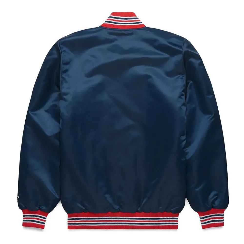 The apparel is created with the superb first-class Satin cloth in a military blue with crimson and white accents blended with it. The functions include a rib knitted striped collar, lengthy sleeveless with rib knitted striped cuffs, rib-knitted hemline and a full snap tab buttoned closure front. The layout finished on it includes a emblem of the crew at the up the front, that’s it, there’s no immoderate designing completed on it as its smooth texture is enough to seize every person’s attention.