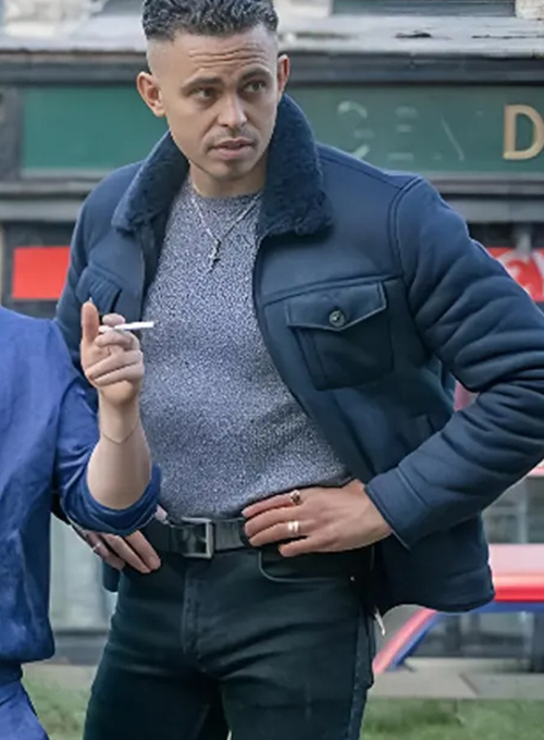 Ash TV-Series Brassic S05 Aaron Heffernan Blue Shearling Faux Leather Jacket