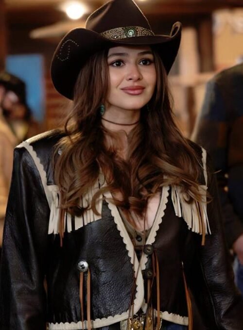Grace Ann Stevens Brilliant Minds S02 Celeste Desjardins Fringed Leather Jacket