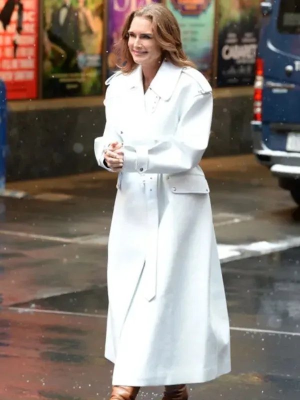 Brooke Shields Is Not Allowed To Get Old Promotion White Leather Trench Coat