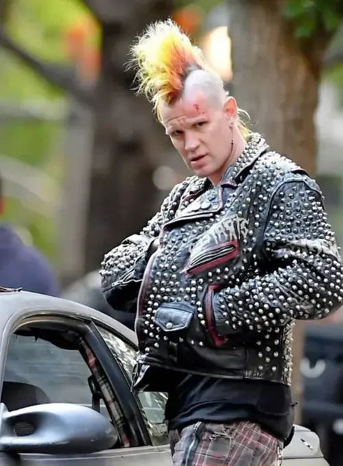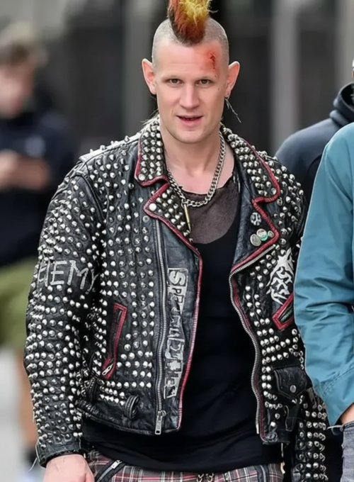 Russ Film Caught Stealing 2025 Matt Smith Studded Leather Jacket