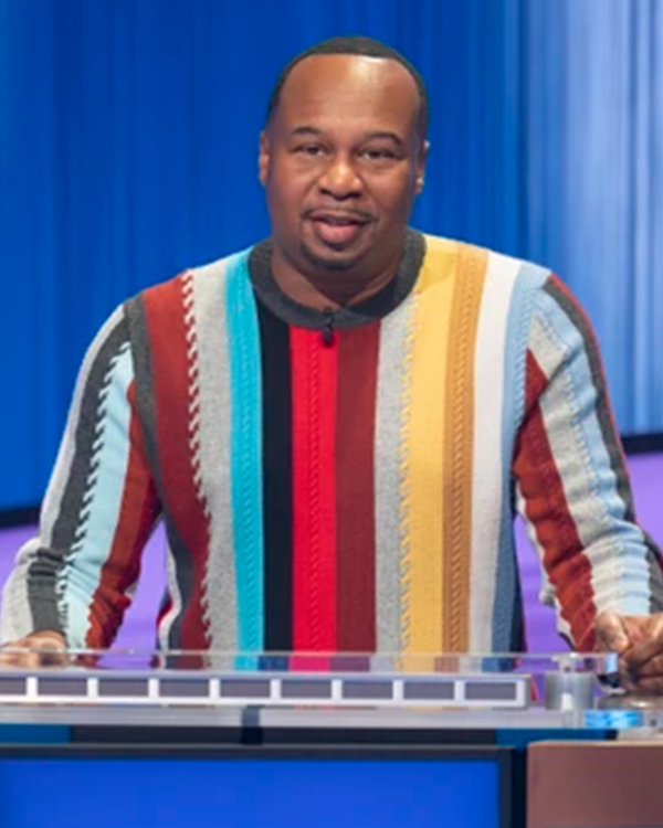 Celebrity Jeopardy S04 Roy Wood Jr Rainbow Striped Sweater