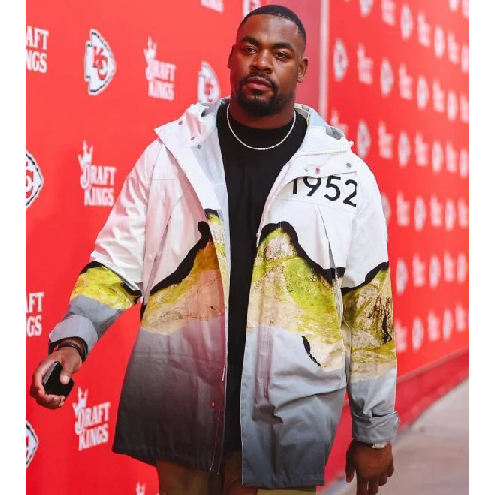 The Chris Jones Chiefs 1952 Jacket captures a classic athletic charm with a design that’s both functional and stylish, making it a standout piece for Kansas City fans and sports enthusiasts alike. Made from a blend of cotton polyester, it’s both lightweight and durable, making it ideal for various weather conditions. This white attire, with a relaxed hooded collar, offers a combination of casual and sporty looks, while the soft viscose lining adds an extra layer of comfort, making it perfect for long hours of wear. The zipper over snap-button closure allows for easy adjustment, offering protection from the wind while keeping the design sleek and modern.