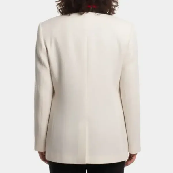Unleash your inner star with the Sydney White Party Blazer. Crafted from suiting fabric, it provides a comfortable fit and a smooth, luxurious texture. The viscose lining guarantees softness and breathability, making it perfect for all-day wear. The blazer showcases a buttoned front and a chic lapel collar, offering a refined and sophisticated appearance suitable for both formal and semi-formal events. Featuring two exterior pockets and one interior pocket, it merges functionality with style, while the open hem cuffs contribute a touch of elegance. Available in a stunning white shade, this piece embodies Sydney Sweeney’s signature style: timeless, chic, and appropriate for any occasion.