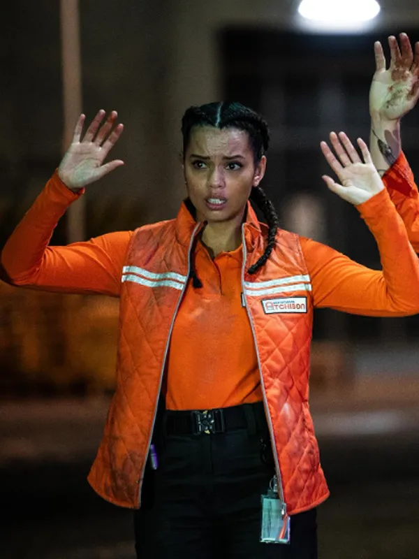 Georgina Campbell Cold Storage 2026 Naomi Williams Orange Quilted Vest