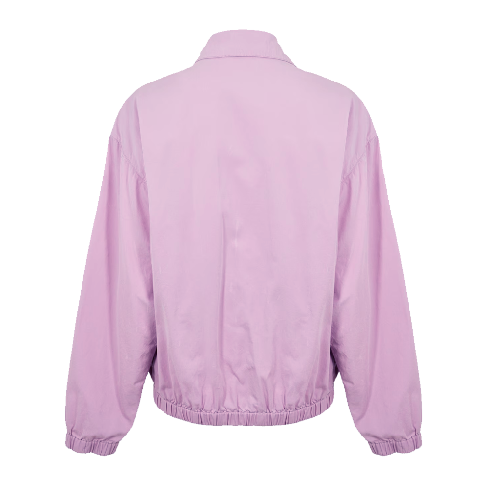 The comfortable cotton used to make this pink jacket feels light and breathable. The jacket is smoother and more comfortable to wear all day thanks to its inner viscose lining. Its front zip closure gives it a sleek, contemporary appearance. The shirt-style collar keeps the informality of the design while adding a sophisticated touch. The sporty vibe is enhanced by the snug fit provided by the elastic cuffs and hem. The jacket’s two front pockets are ideal for holding little everyday objects.