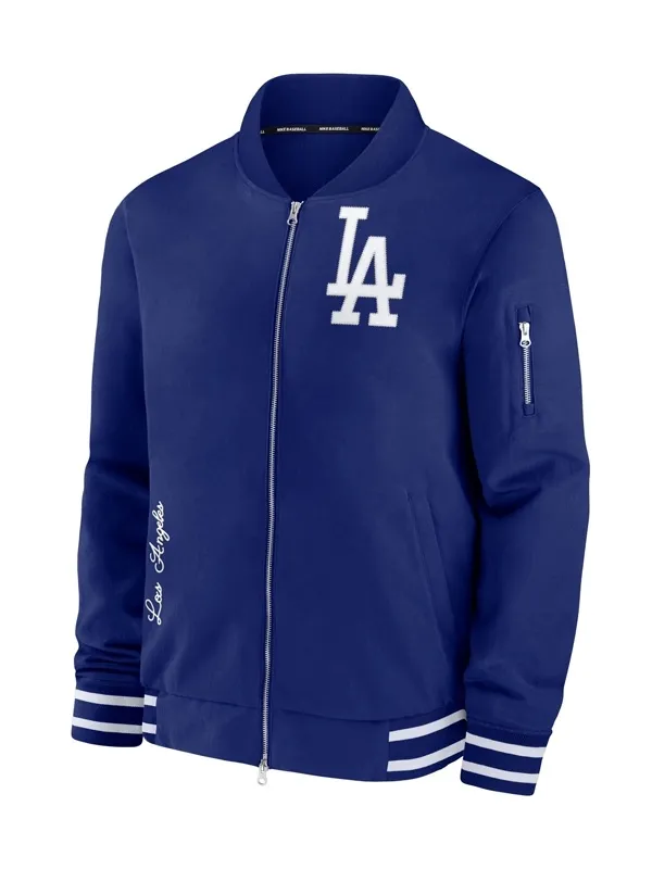 This Dodgers bomber jacket is fantastic quality. The zipper closure is smooth, and the hoodie adds a sporty touch. Fits perfectly and feels very comfortable.