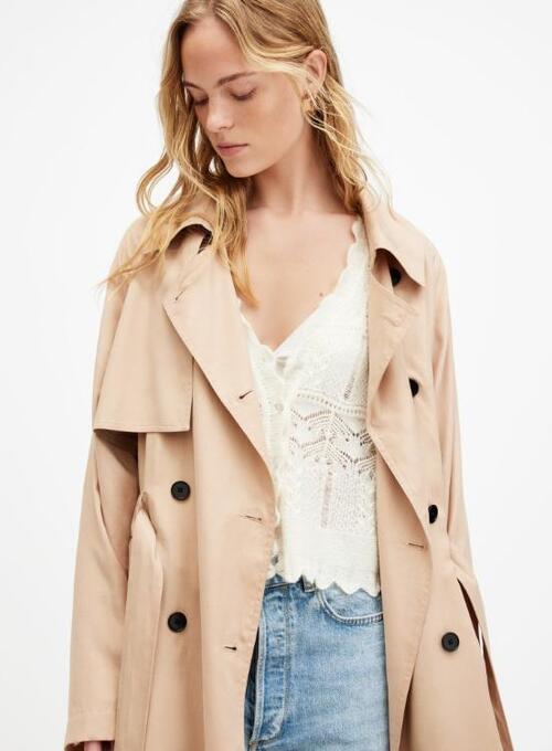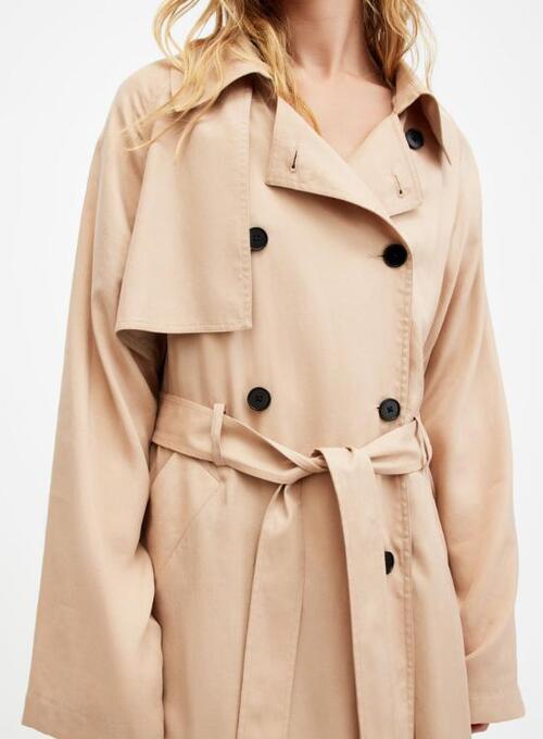 This pink trench coat is designed to merge elegance with comfort. Made from smooth and durable fabric, it offers a soft feel while preserving a structured look. The longer length adds a touch of sophistication, while the tailored fit ensures a flattering silhouette. Its soft pink color gives off a fresh and modern feel, making it perfect for both casual outings and more formal occasions. The coat can be easily layered over dresses, tops, or sweaters, making it a versatile piece for any wardrobe. With careful stitching and a comfortable design, it is ideal for daily wear. This trench coat is an excellent choice for anyone looking to elevate their outfit with a chic, elegant, and timeless outer layer.