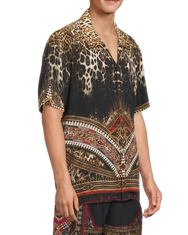The camp collar and short sleeves make this shirt perfect for warmer weather. However, the button closure could be a bit stiff, which may take some getting used to for a more relaxed fit.