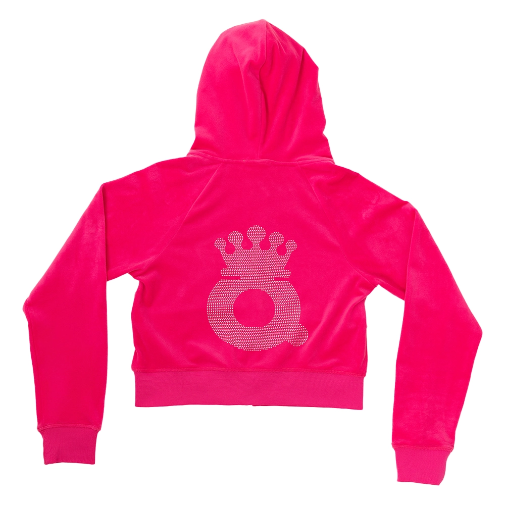 I love how this tracksuit looks and feels. The velour is soft on the skin, and the pink shade is vibrant but not too bright.