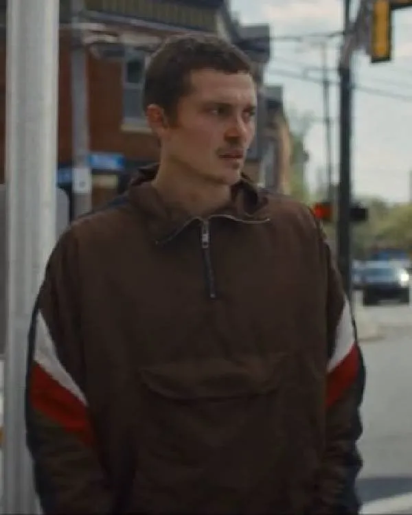 In Eenie Meanie, Karl Glusman exudes a cool, self-assured vibe, and his clothing choices give the character even more individuality. The brown pullover jacket is one particularly striking item that gives him a laid-back yet fashionable appearance. It makes his character look effortlessly stylish and fits in perfectly with his bold yet composed demeanor in the movie. Fans praised how this understated yet stylish jacket fit his part and gave him a distinctive on-screen persona without being garish. It demonstrates how a character can appear polished and self-assured at the same time with the appropriate attire.