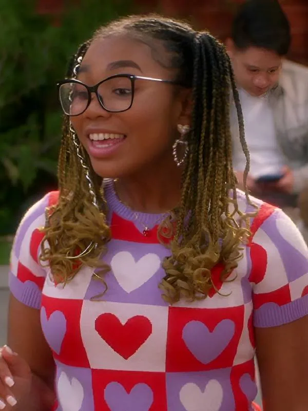 Shelly Sharp Electric Bloom S01 J’Adore Elizabeth Checkered Hearts Print Crewneck Sweater