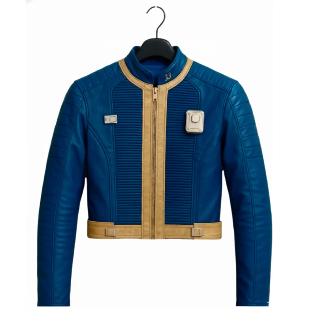 The Fallout S02 Lucy MacLean Jacket is designed to be both fashionable and comfortable. Constructed from genuine leather, you can choose your desired material. The viscose lining adds warmth and comfort for extended wear. Its erect collar and long sleeves contribute to a modern and assertive look, while the front zip closure ensures ease of wear. The vibrant blue hue introduces a unique and attention-grabbing element that makes a statement. This jacket is essential for anyone who values stylish outerwear or is a fan of the Fallout series. Inspired by Ella Purnell herself, it offers a chic and confident appearance that is ideal for casual outings, cosplay events, and everyday use.