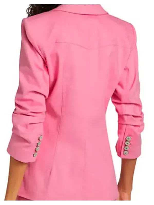 Elsbeth 2024 Carrie Preston Pink Heart Blazer made from smooth suiting cloth, the blazer functions a soft viscose lining on the internal, which enables offer all-day ease. The button-fashion closure at the front provides a neat and dependent appearance, while the lapel-fashion collar helps a pointy profile. Long sleeves and buttoned cuffs make contributions to its well-balanced silhouette. A single pocket located on the chest provides a easy, realistic element with out taking away from the overall design. The coloration is a smooth, light tone that adds a peaceful yet sizeable element to the piece. The blazer’s shape creates a loose-fitting suit that is suitable for both everyday wear and special occasions. Every component of the garment is painstakingly crafted to strike a balance between smoothness and structure.