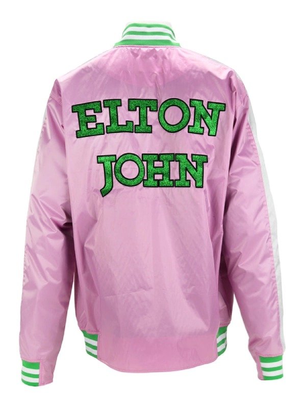 Find your style game with the Elton John So Goodbye Yellow Brick Road Pink Jacket from florida Jacket. Inspired by the iconic British singer and pianist, this jacket adds charm to any outfit, whether casual or formal. With “Elton John” emblazoned on the back and stars adorning the front, it’s designed to make a statement and turn heads.