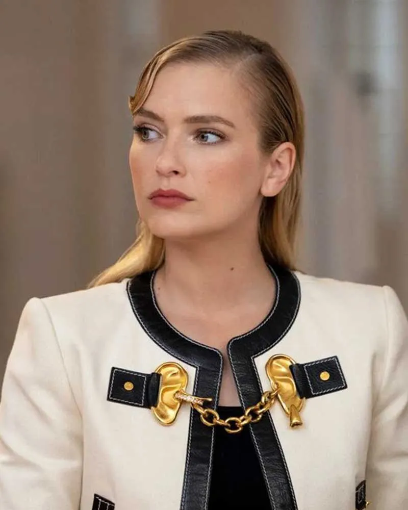 French actress and fashion enthusiast Camille Razat is well-known throughout the world for her sophisticated appearance and self-assured style. Her graceful on-screen persona, contemporary style choices, and inherent beauty have earned her admiration. She is a powerful style inspiration for women who adore understated yet striking apparel because her ensembles frequently combine modern trends with timeless charm. Camille’s wardrobe selections are frequently commended for being tidy, elegant, and practical for daily wear. Many admirers from all over the world follow her sense of style because of her distinctive ability to transform simple ensembles into striking looks. She exudes confidence, comfort, and elegance in everything from polished outerwear to casual streetwear. This Emily In Paris S03 Camille Razat White Jacket is a great choice for women who want a stylish and adaptable outer layer inspired by a timeless celebrity because it reflects the same sophisticated taste.