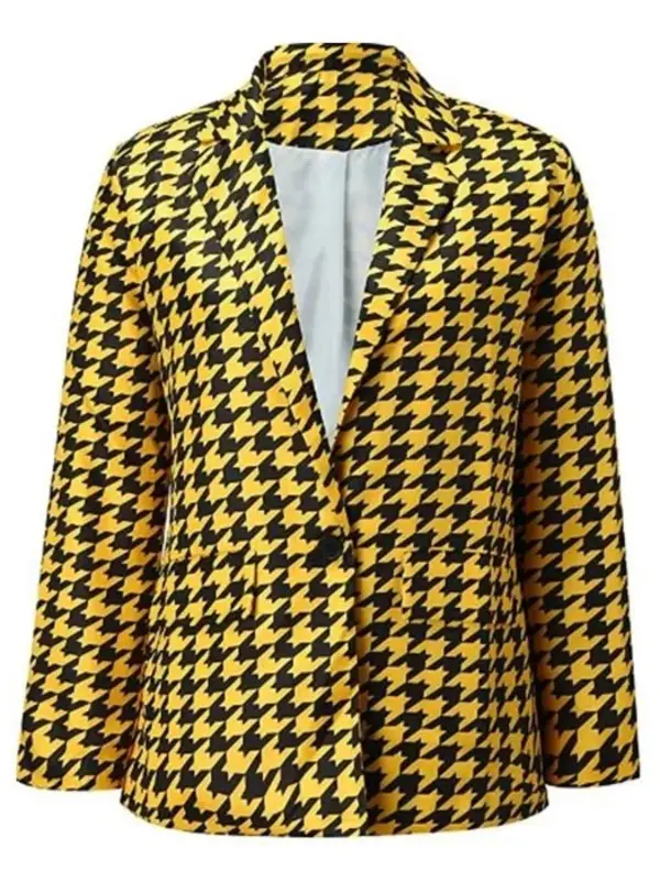 The wool fabric used to make this Lily Collins Emily in Paris S03 Emily Cooper Yellow Blazer has a smooth finish and is long-lasting. It is comfortable and long-wearing due to the soft viscose lining inside. Its button-style front closure gives it a polished and organized appearance. Its timeless appeal is enhanced by the lapel-style collar, which makes it appropriate for both formal and informal attire. A clean, contemporary touch is added by the full-length sleeves with open hem cuffs. This blazer’s two outer pockets and one inner pocket combine fashion and functionality. It is a striking piece that instantly elevates any ensemble because of its vivid yellow hue. It looks great with skirts, jeans, and pants.