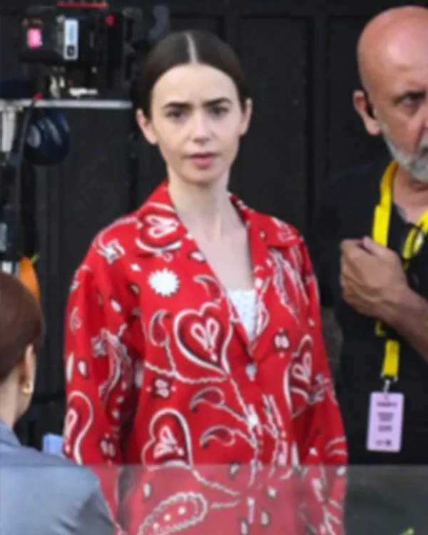 Emily In Paris S05 Lily Collins Red Paisley Shirt Emily In Paris S05 Lily Collins Red Paisley Shirt