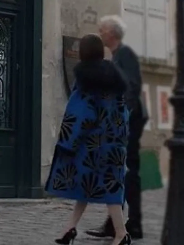 Emily in Paris S5 Lily Collins Blue Printed Coat Emily in Paris S5 Lily Collins Blue Printed Coat