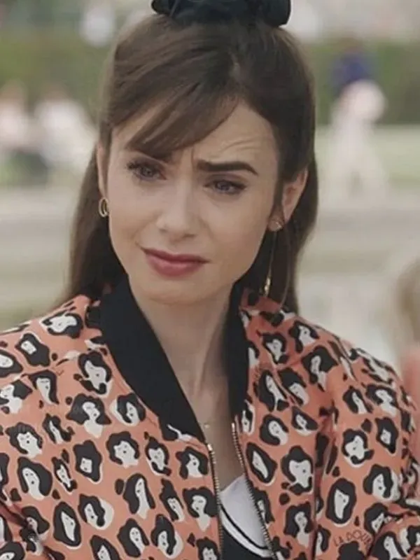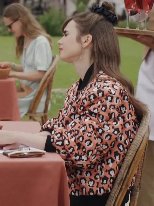 Lily Collins Emily In Paris S03 Emily Cooper Orange Bomber Jacket