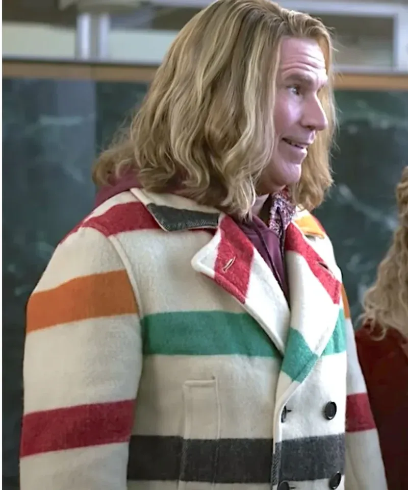 The Will Ferrell Eurovision Song Contest Peacoat is crafted from exquisite wool, presenting each style and luxury. This coat capabilities a lovely white color with multicolored stripes, making it a unique and fascinating piece. The lapel-fashion collar and double-breasted buttoned the front closure add a sophisticated touch to the design. Inside, the gentle viscose lining continues you heat and comfortable. The long, geared up sleeves with open hem cuffs complete the trendy appearance. This coat is a great preference for any stylish guy looking to stand out.