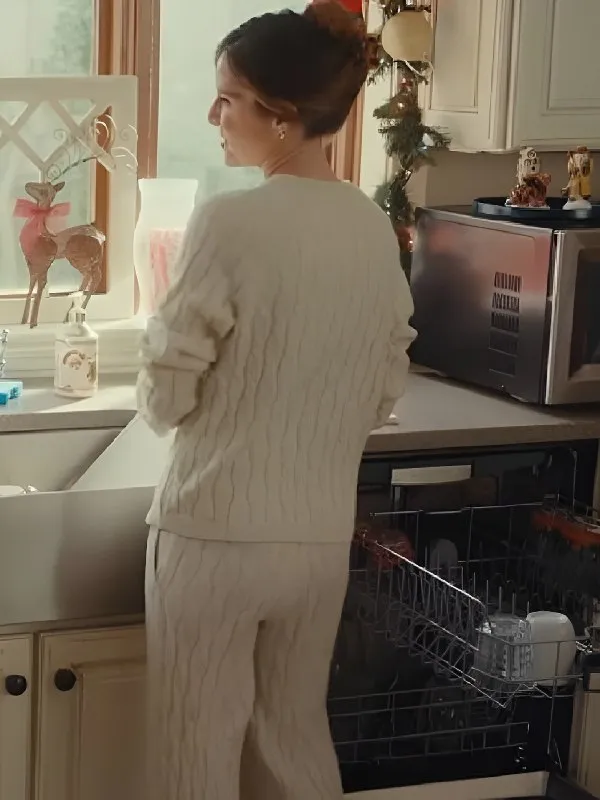 Josie Fletcher from Exes of Christmas Past embodies the true spirit of cozy holiday attire. Her soft and simple winter ensembles provide a delightful source of inspiration for those who value warmth while also looking stylish. The Christmas Past Underwood Knitted Pajamas set that she wears in the film beautifully merges comfort and charm, making it perfect for relaxing by the fireplace, enjoying a Christmas morning, or spending peaceful evenings with family.