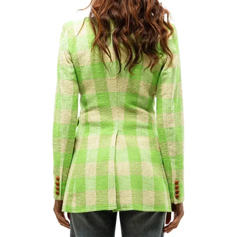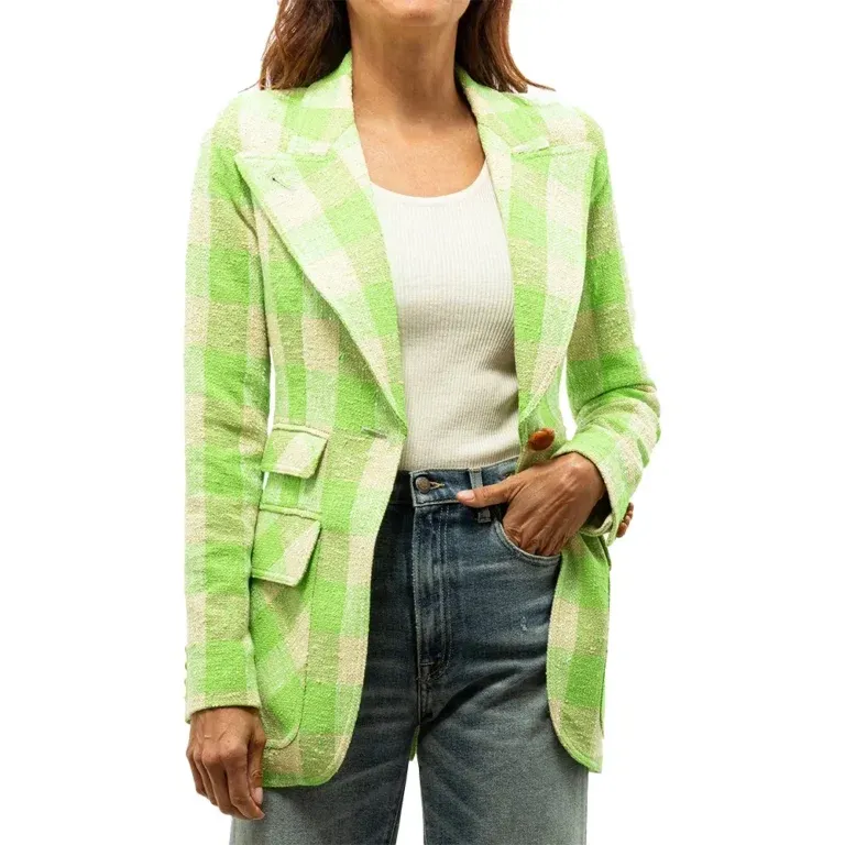 The Lacey Quinn Found S02 Gabrielle Walsh Checkered Blazer is crafted from cotton cloth. It has a easy viscose lining on the indoors for additional consolation. The the front has a button-fashion closure and a clever lapel-style collar, giving it a stylish and formal look. The blazer has complete duration sleeves with button cuffs that add to its fashionable style. It capabilities outer pockets and one internal pocket, first-rate for wearing small objects. The checkered published format and wealthy inexperienced coloration provide it a traditional yet modern appearance. Whether you’re dressing up for paintings or a informal day out, this blazer is a great choice.