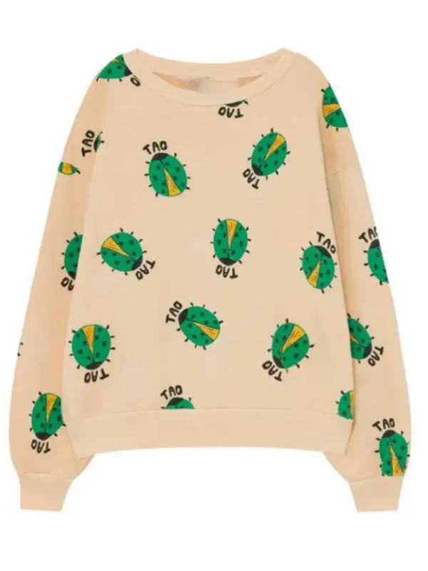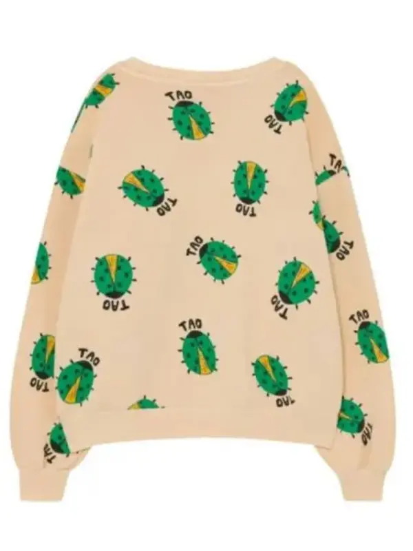 This sweatshirt is made from warm fleece material. It feels soft on the skin and keeps you cozy in cooler weather. It has a pullover front, so it’s easy to wear. The collar has a round shape, simple and comfortable. Long sleeves give full coverage, and the rib knitted cuffs keep the sleeves in place. The fit is relaxed, perfect for daily wear, travel, or lounging. The soft beige tone is easy to match with jeans, leggings, or skirts. The Tao Bug print adds a fun touch without being too loud. Whether you’re a fan of French fashion, Sara Giraudeau, or just want something comfy and cool this sweatshirt is a great choice.