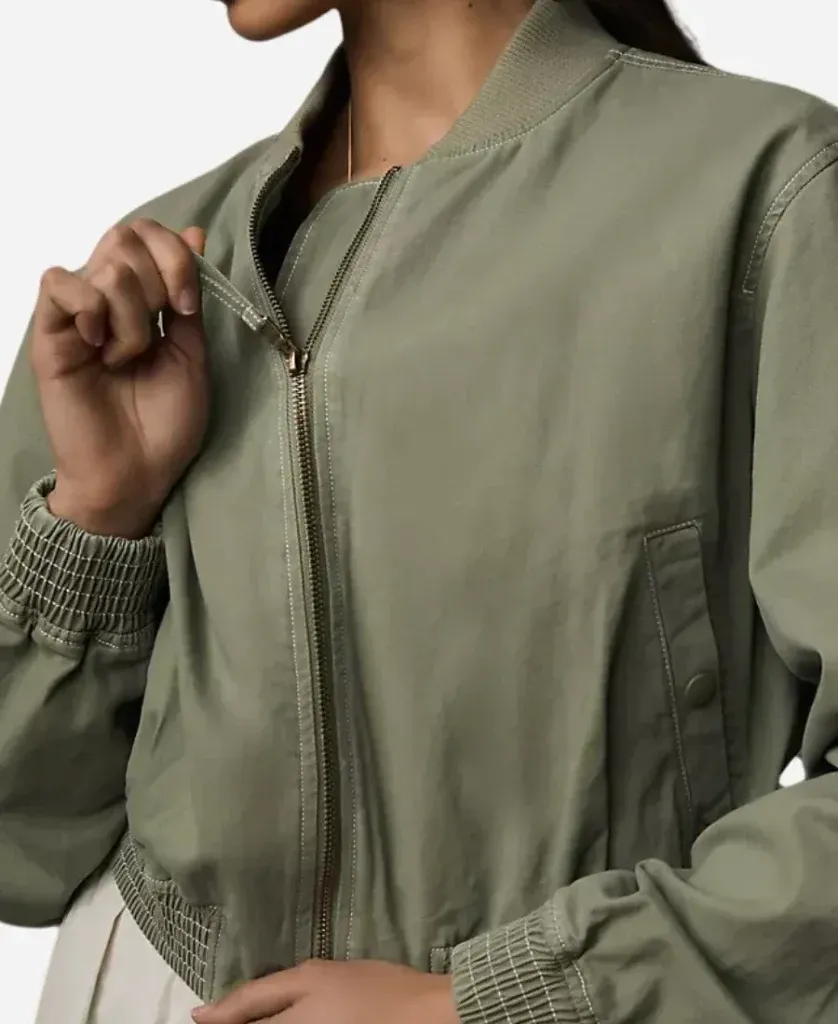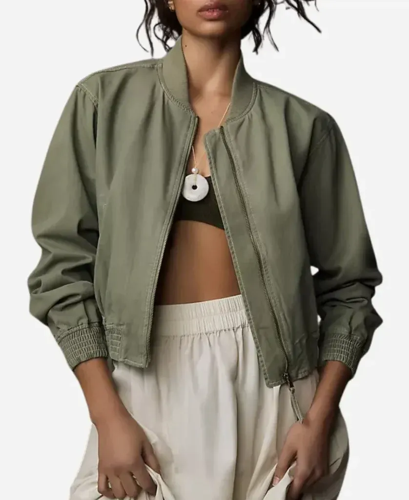 The Ginny & Georgia S03 Antonia Gentry Green Bomber Jacket’s durable cotton construction guarantees breathability and comfort. A soft viscose fabric is used to line the inside for extra warmth and comfort. The front’s sturdy zipper closure and traditional ribbed collar give it a timeless bomber jacket look. With two front pockets and one inside pocket, it is perfect for keeping your essentials handy. The full-length sleeves have ribbed cuffs for a snug fit. The jacket’s rich green color gives it a youthful, fresh appeal, making it a great choice for anyone who appreciates casual fashion with a noticeable edge.