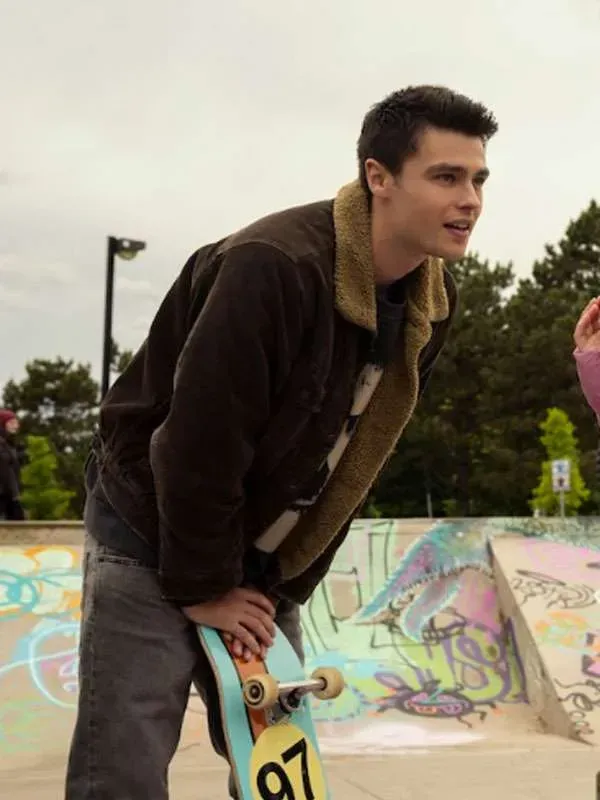Felix Mallard plays Marcus Baker in Ginny & Georgia, the mysterious and introspective next-door neighbor who quickly gains admirers. Because of his quiet charm and strong emotions, Marcus is there for the people he cares about, despite his tendency to keep to himself. His edgy, artistic side is reflected in his cool, tough, and effortlessly stylish appearance. In Season 3, his Marcus Baker Shearling Jacket adds to his signature style. It is warm, comfortable, and a little rebellious, making it the perfect outerwear for someone like Marcus. Whether he is riding his bike or having meaningful conversations, this jacket helps to define his unique on-screen persona.