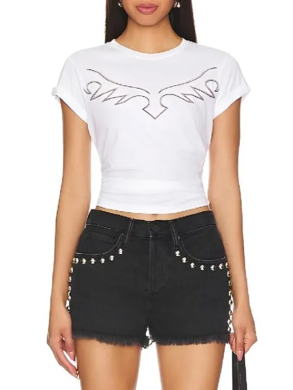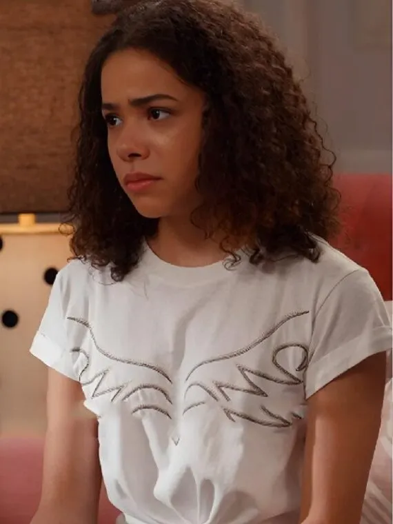 With the Ginny & Georgia Season 3 Antonia Gentry White Wings Print T-Shirt, you can exude carefree charm and daring individuality. This unique piece, which was inspired by Antonia Gentry’s ever-stylish character Ginny Miller, combines casual comfort with a dash of attitude, making it ideal for show fans or anyone who enjoys statement fashion.
