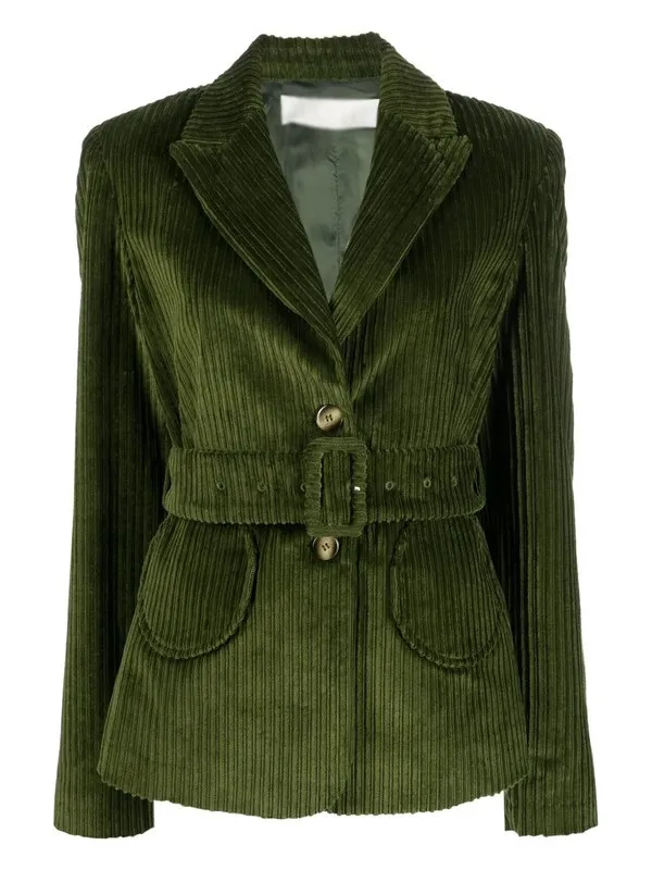 I ordered this green blazer because I liked how it looked on Paulina. The color is rich and not too bright. It fits nice and feels good on my skin. The corduroy is soft and not too heavy. I wear it with jeans and boots and it looks great. I like the way it feels when I move.