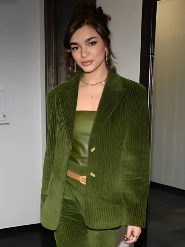 Good Morning America 2025 Paulina Chávez Green Corduroy Blazer is shaped using corduroy, which adds a soft texture and herbal finish to the design. Inside, the liner is crafted from viscose cloth, offering consolation and a mild layer among the outer cloth and the skin. The the front is shaped with an open fashion that includes a buttoned finish, permitting easy put on while still maintaining a smooth appearance. The lapel collar adds a familiar and smooth contact to the neckline. Long sleeves lead to open hem cuffs, making the suit easy and practical. There are pockets on the waist and at the inner, giving area for carrying items while staying close to the traditional shape. The green tone supports a calm, versatile appearance, carefully crafted for comfort and everyday use.